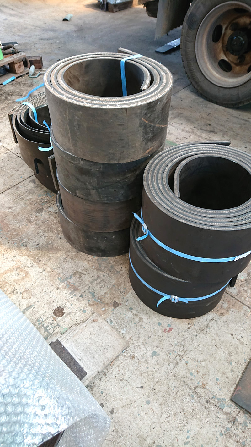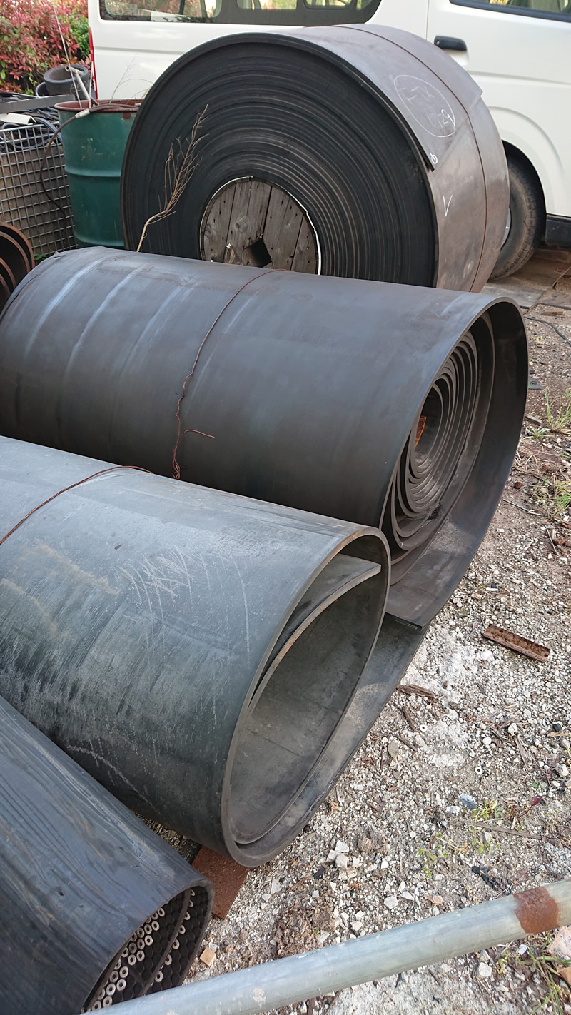 主に製鉄所で使われたコンベアベルトを程度の良い物に限り、再利用しています。
